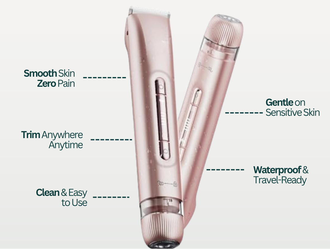 Unleash smoother, softer skin in minutes — no razor burns, no wax appointments, and no embarrassing regrowth days. Designed with delicate zones in mind, our 2-in-1 trimmer is your go-to for clean, irritation-free grooming from head to toe.
